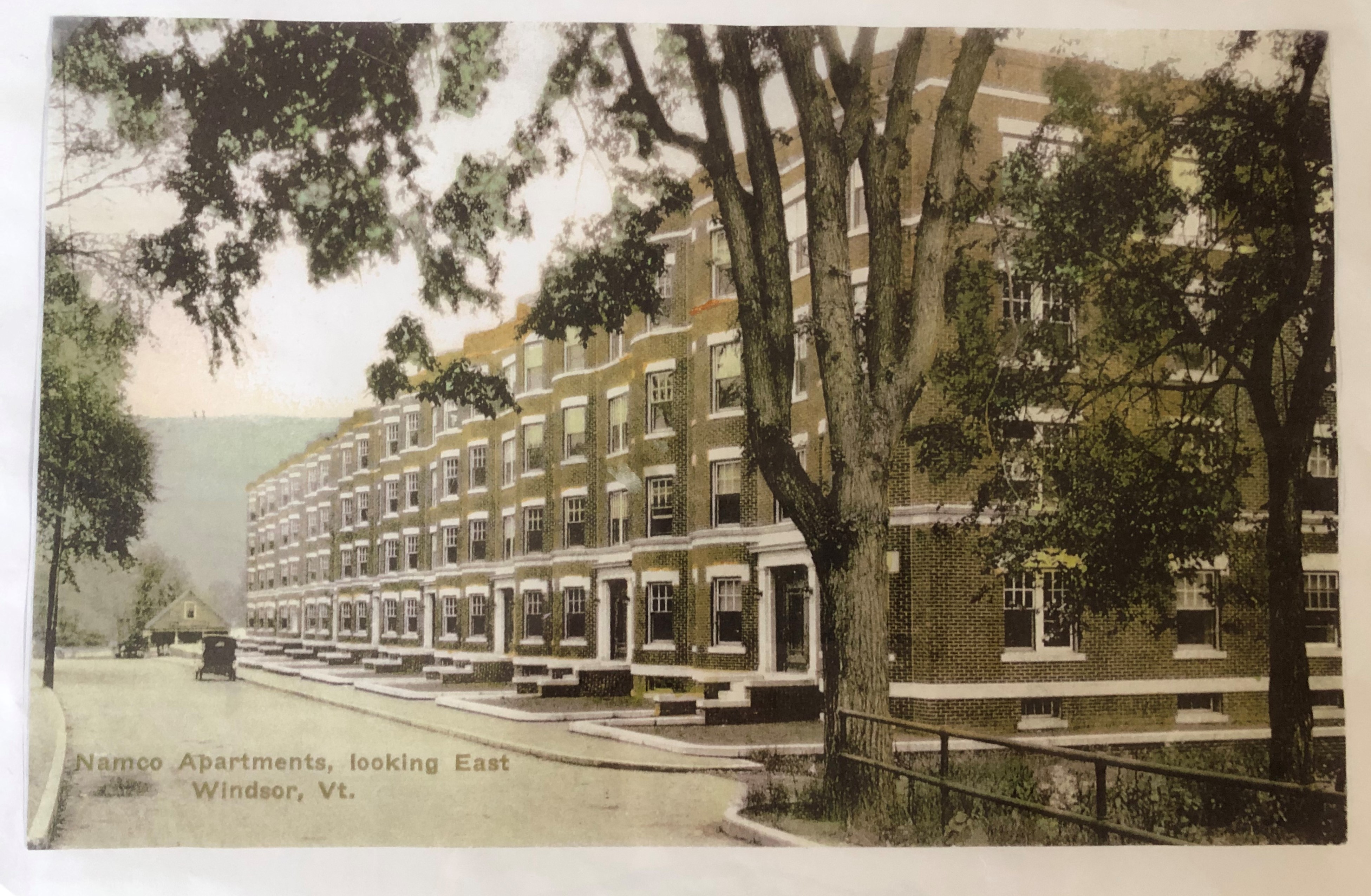 In November 1921, the Johnson family, formerly of Springfield, Vermont, enjoyed Thanksgiving in their new, cozy, light-filled rooms overlooking Mill Brook in Windsor. They had moved to the not-quite-finished Namco apartments earlier that year of 1921, and in doing so marked their name down in history — or at least in the April 29th edition of the Vermont Journal — as the very first tenants of the then largest residential building in New England.
