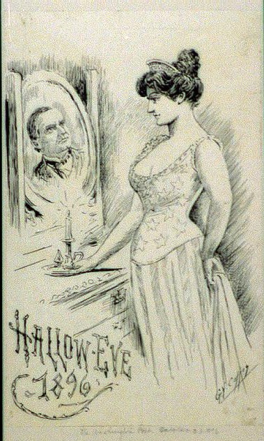Then the Irish began arriving, bringing their traditions with them. As the number of immigrants increased, so did attention to Halloween. As a Rutland Daily Herald article in 1878 reported, “Tonight is Hallowe’en. Maidens who wish to investigate the future will walk backwards down the cellar stairs, holding in their hands the looking glass that is to reflect the features of the ‘coming man.’”