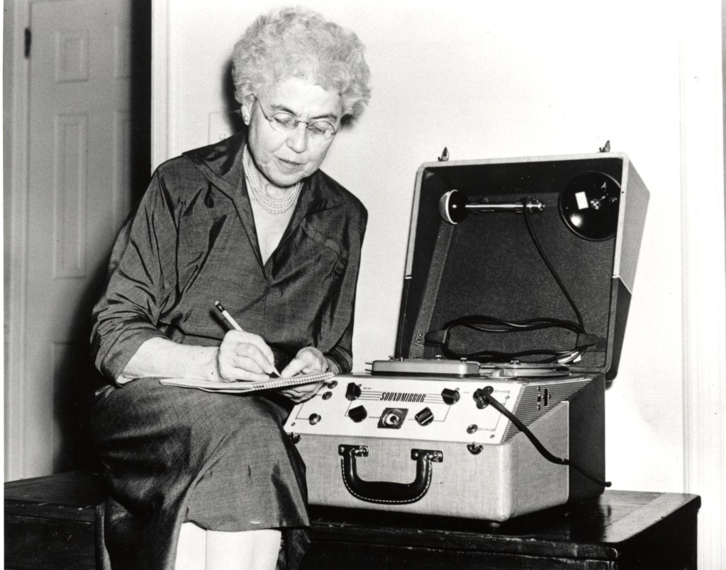 Helen Hartness Flanders with dictaphone (prob 1950s), Middlebury College Special Collections, Middlebury, Vermont